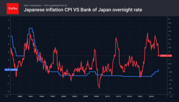 The fall in consumer prices in Japan to 1.5%, the lowest level since March 2022, added fuel to the USDJPY rally. The slowdown in inflation allows the central bank to take its time with raising rates. At the same time, this gives Sanae Takaichi a free hand in expanding fiscal stimulus. The prime minister intends to address parliament and outline her economic policy. Investors fear that excessive stimulus will revive the “Takaichi trade” and sink the yen.