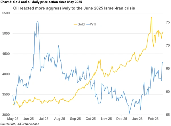 At the same time, there are numerous reports about an imminent US strike on Iran, despite the positive newsflow regarding the ongoing negotiations. Gold and oil are poised to further benefit from an escalation but the aftermath matters. Should Iran retaliate, potentially drawing Israel into the crisis, market reaction could resemble the June 2025 price action, when both the dollar and gold got a sizeable boost, but oil was the clear protagonist, skyrocketing to $80. Interestingly, gold has been struggling to reclaim the $5,000 level, potentially suffering from the Chinese holiday and the persistent strength of the US dollar.