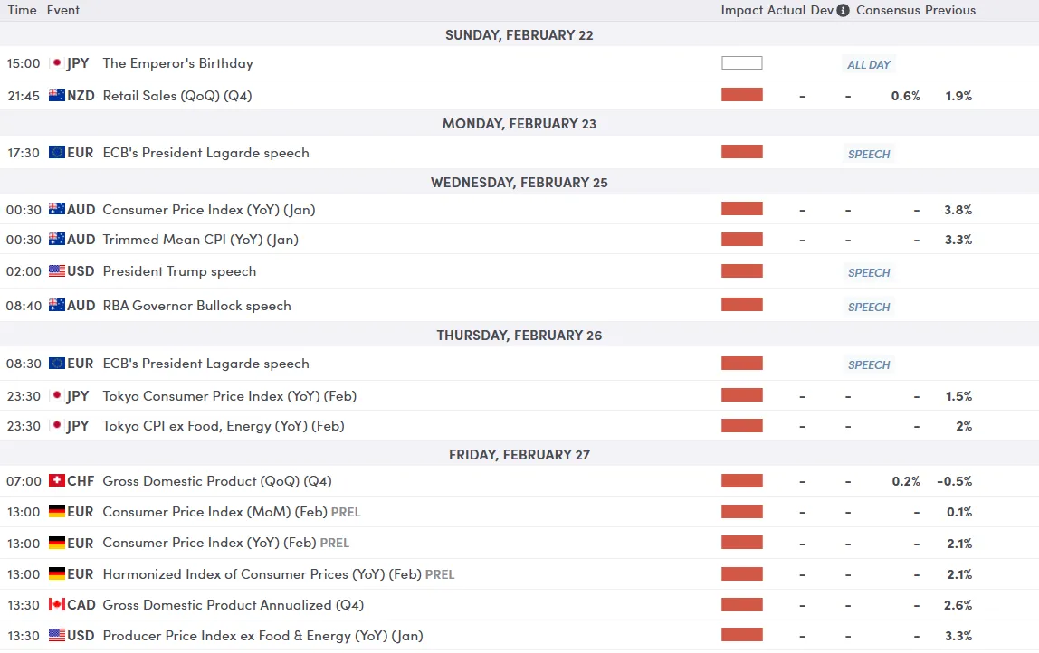 • Feb 25 (Wed): Nvidia Earnings; AU Monthly CPI; US Consumer Confidence.