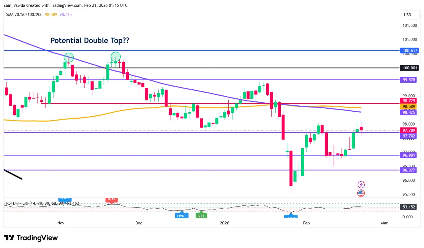 US Dollar Index (DXY) Daily Chart, February 20, 2026