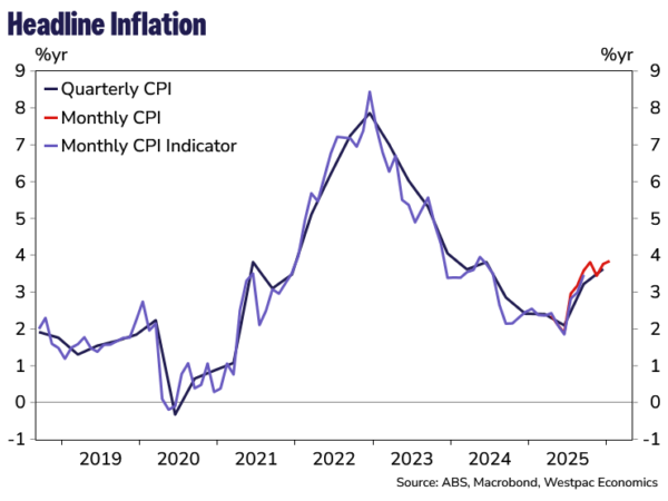 We start 2026 with a complete Monthly CPI. In January the CPI gained 3.8% in the year, a touch stronger than Westpac’s estimate of 3.6%yr and the market estimate of 3.7%yr. In the month, the CPI lifted 0.4%, stronger than Westpac’s published near-cast of 0.1% on the back of stronger than expect gains in electricity and garments & footwear offset somewhat by a larger than expected fall in holiday travel and a smaller than expected rise in health.