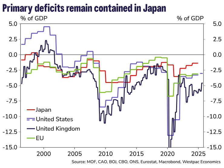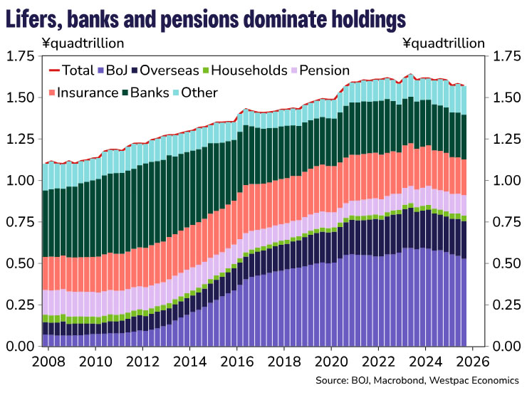Alongside serviceability concerns, investors have expressed concerns around excess supply of Japanese Government Bonds (JGBs) as the Bank of Japan slows its purchases of bonds. However, these concerns are overstated. For one, the BoJ has been vocal about reducing its holdings in a way that “avoid[s] inducing destabilizing effects on the financial markets”. This isn’t just rhetoric. The BoJ tapered its pace of purchases in July 2025 from JPY400bn to JPY200bn and have, on numerous occasions, affirmed that “In the case of a rapid rise in long-term interest rates, it will make nimble responses by, for example, increasing the amount of JGB purchases…”. Note as well, their current purchase pace is not insignificant at around JPYs2.9tril a month (which annualises to around JPY36tril a year) against the Ministry of Finance’s (MoF) planned JPY190tril of issuance through FY2025 (ending in March 2026). The MoF also has flexibility on the duration of issuance, offering another way to contain market volatility and an unwanted tightening of financial conditions.