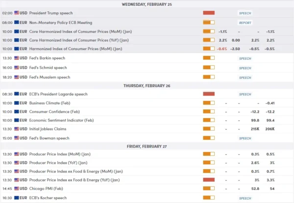 Tomorrow’s speech by ECB President Lagarde at the EU Parliament is the only potential domestic driver for the euro this week, ahead of flash CPI figures on Friday.