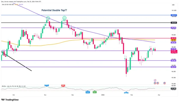 US Dollar Index (DXY) Daily Chart, February 25, 2026