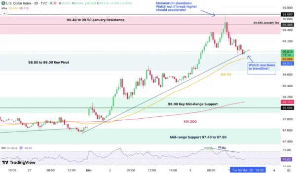 Dollar Index (DXY) 4H Chart, March 3, 2026 – Source: TradingView