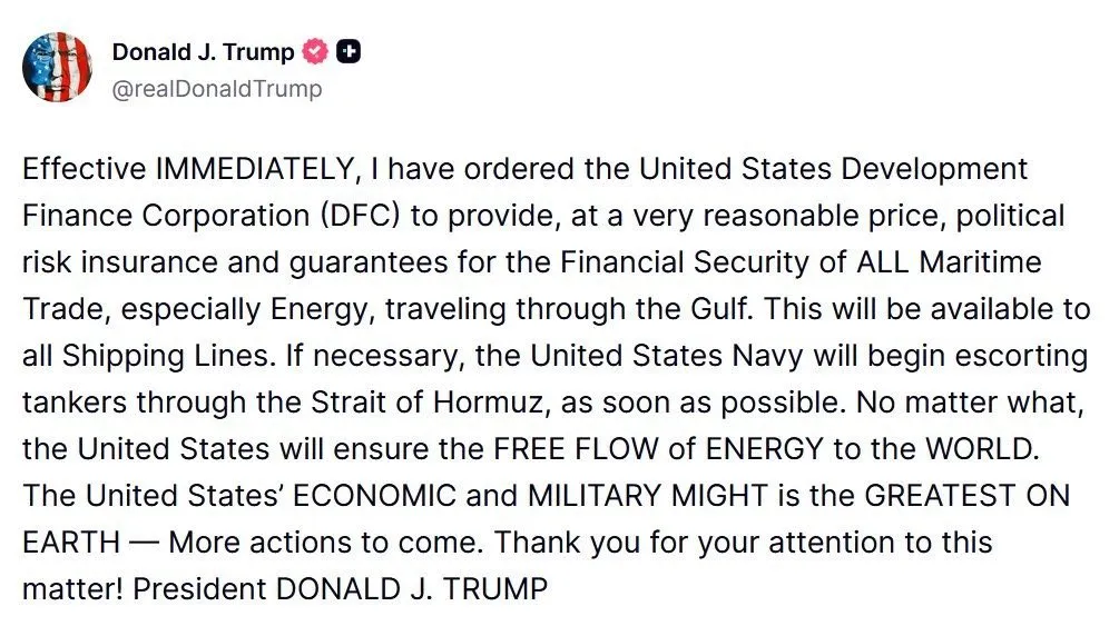 Trump announced a pledge to establish a major security framework to protect commercial shipping routes across the Arabian Sea, with a specific focus on the highly vulnerable Strait of Hormuz.