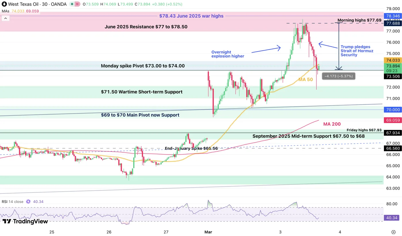 WTI (US) Oil CFD 30M Chart, March 3, 2026 – Source: TradingView
