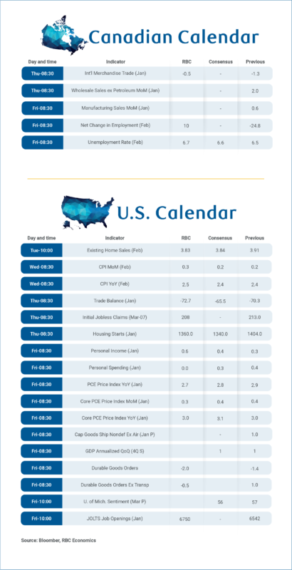 February U.S. inflation report due next week will provide additional context for North American price trends. We expect headline inflation to come in at 0.3% month-over-month, which will push the year-over-year rate slightly higher to 2.5%. Core inflation growth is expected to remain unchanged from the prior month at 2.5% year-over-year and 0.3% month-over-month.