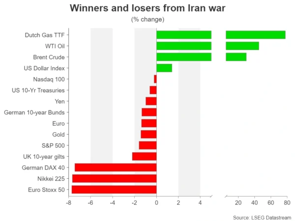 Coordinated efforts for rich nations, such as the G7 countries, to release some of their strategic oil reserves may well end up being too little too late. It’s no surprise therefore that after a somewhat contained response to the onset of war in the Middle East, markets are now in full panic mode.