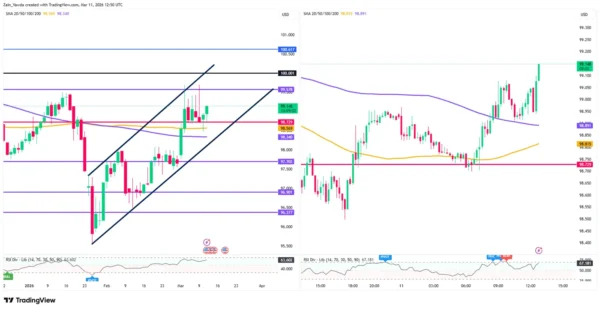 US Dollar Index Daily Chart (Left)/15M Chart (Right), March 11, 2026