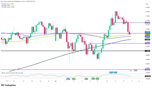AUD/USD Four-Hour Chart, March 13, 2026