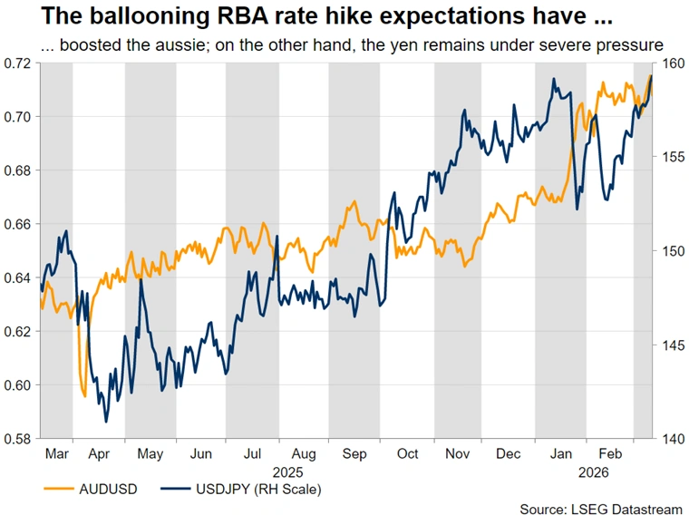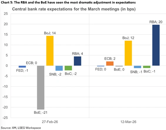 BoJ rate hike expectations have been stable throughout this period, as the Middle East developments have added another layer of complexity to the BoJ. However, a successful Shunto round, with sizeable wage increases agreed, should unlock the April rate move, provided the US-Israel-Iran conflict does not escalate further. This means that a likely hawkish tilt on Thursday might put a temporary stop to the recent rally in dollar/yen, though Japanese authorities are on high alert to intervene if the pair climbs towards 160, even ahead of the BoJ meeting.