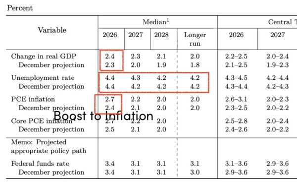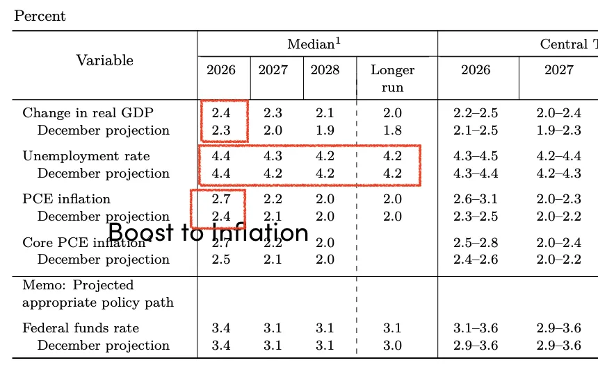 The Fed projected a slightly more elevated inflation in 2026, with the War affecting expectations.