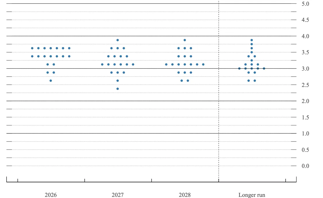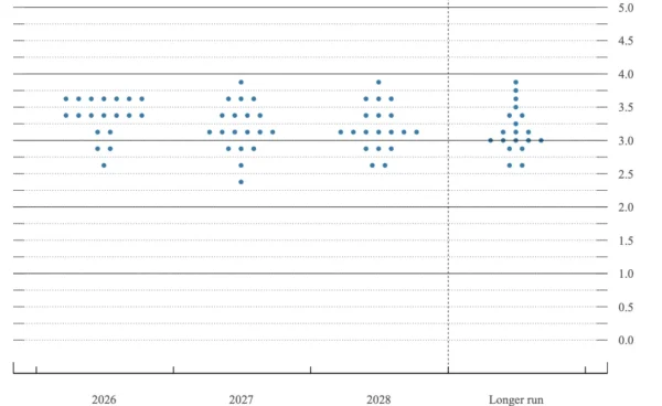 The Dot Plot has largely restrained around the 3.5% to 4% range for 2026, indicating that Rate cuts are really far gone.