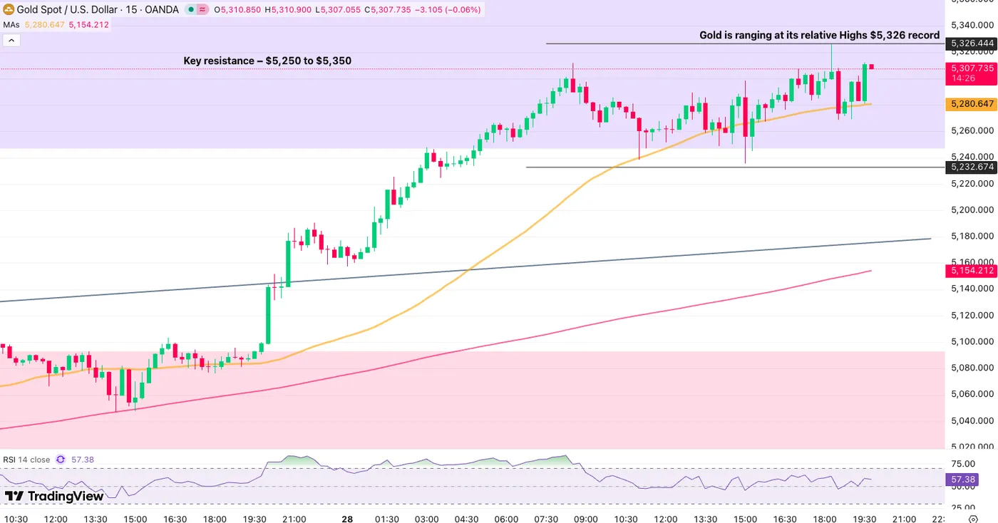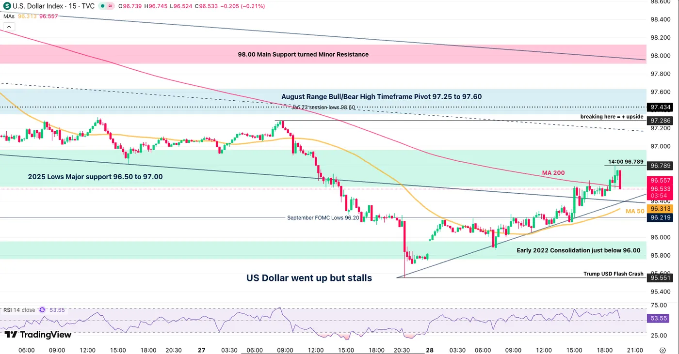 US Dollar (DXY) 15M Chart – Source: TradingView – January 28, 2026