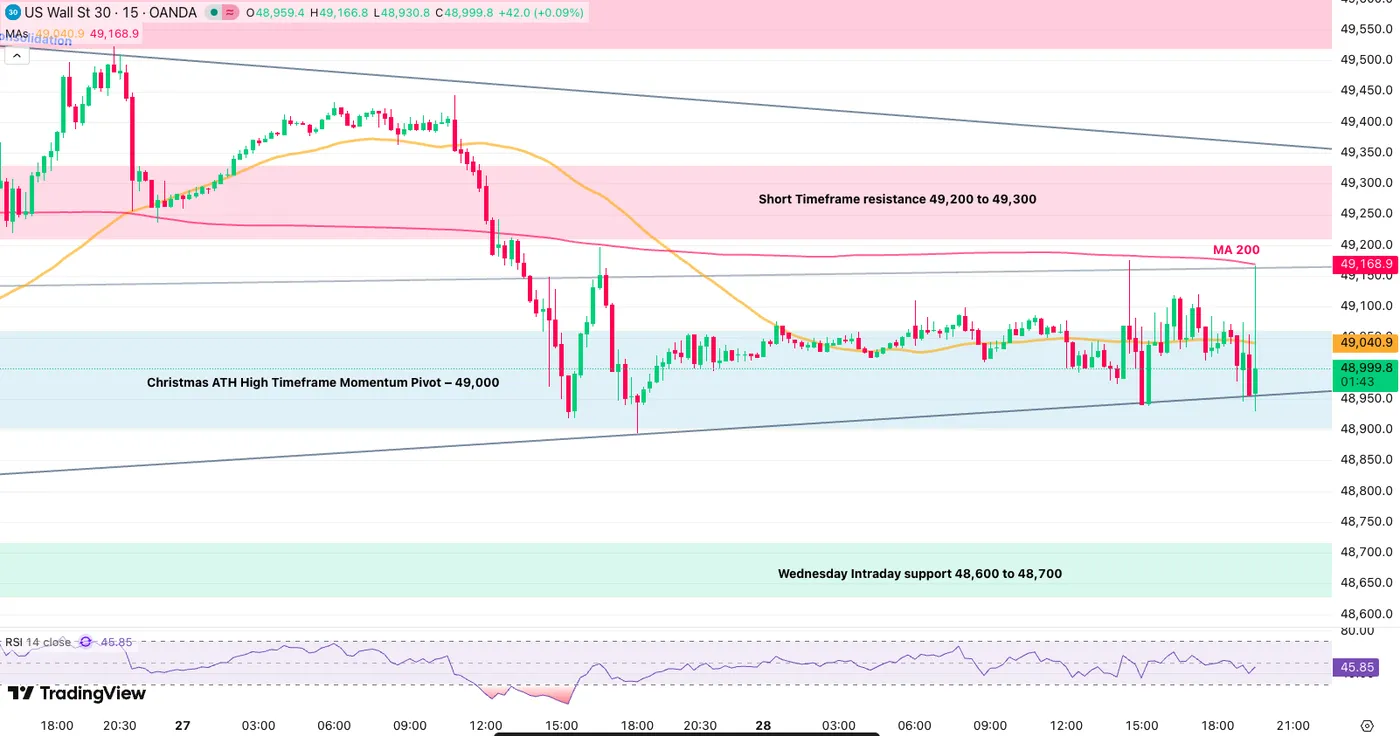 Dow Jones (CFD) 15m Chart – Source: TradingView
