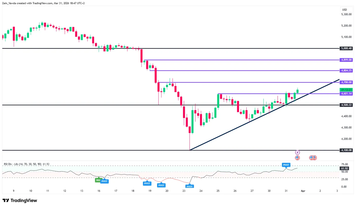 Gold (XAU/USD) Four-Hour Chart, March 31, 2026