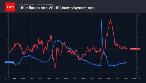 Brent saw a sharp rally amid renewed threats from Donald Trump, but EURUSD stabilised after a decline amid expectations for the US employment report. Bloomberg experts forecast a return to growth in non-farm payrolls in March following one of the sharpest declines in February. Unemployment is expected to remain at 4.4%.