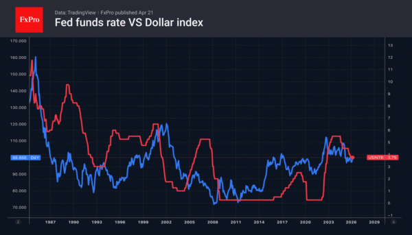Kevin Warsh has repeatedly referred to Alan Greenspan. Greenspan kept rates steady during his tenure as Fed Chair, whilst other central banks were raising them. The rationale was the rise in productivity spurred by the Internet revolution. Artificial intelligence may also curb price growth, allowing the Fed to pursue a more accommodative monetary policy and putting pressure on the USD.