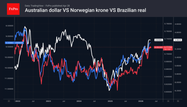 Overall, the combination of central banks’ passivity at the end of April and the oil rally could work in favour of the US dollar. Pressure on it as a safe-haven asset is being exerted by stock indices that keep hitting record highs.