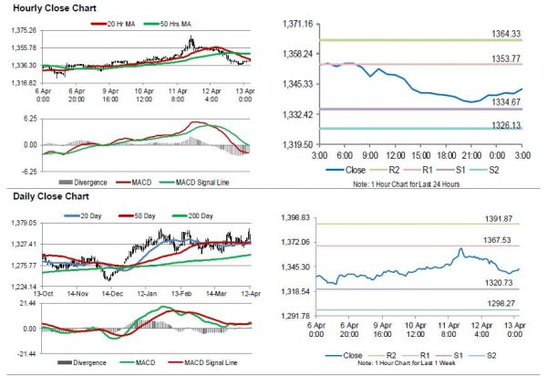 In the Asian session, at GMT0300, the pair is trading at 1343.20, with gold trading 0.37% higher against the USD from yesterday’s close.