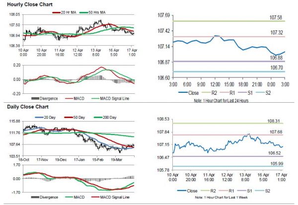 The pair is expected to find support at 106.88, and a fall through could take it to the next support level of 106.70. The pair is expected to find its first resistance at 107.32, and a rise through could take it to the next resistance level of 107.58.