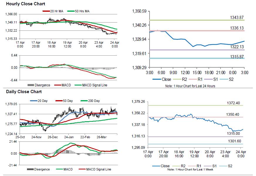 The pair is expected to find support at 1322.13, and a fall through could take it to the next support level of 1315.87. The pair is expected to find its first resistance at 1336.13, and a rise through could take it to the next resistance level of 1343.87.