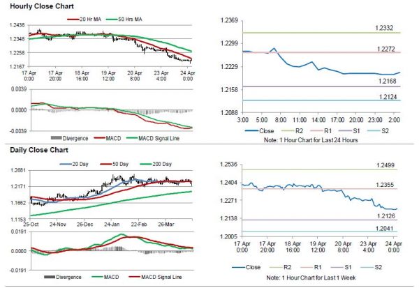 The pair is expected to find support at 1.2168, and a fall through could take it to the next support level of 1.2124. The pair is expected to find its first resistance at 1.2272, and a rise through could take it to the next resistance level of 1.2332.