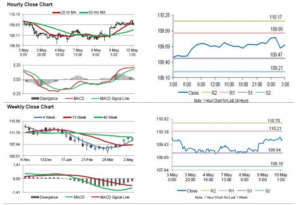 In the Asian session, at GMT0300, the pair is trading at 109.72, with the USD trading slightly lower against the USD from yesterday’s close.