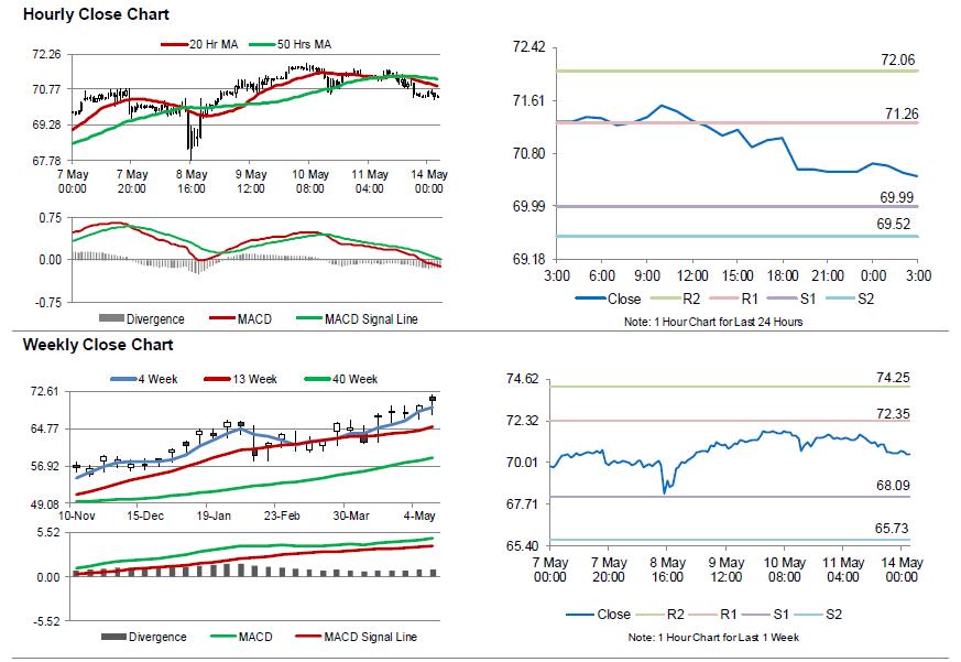 In the Asian session, at GMT0300, the pair is trading at 70.45, with oil trading 0.16% lower against the USD from Friday’s close.