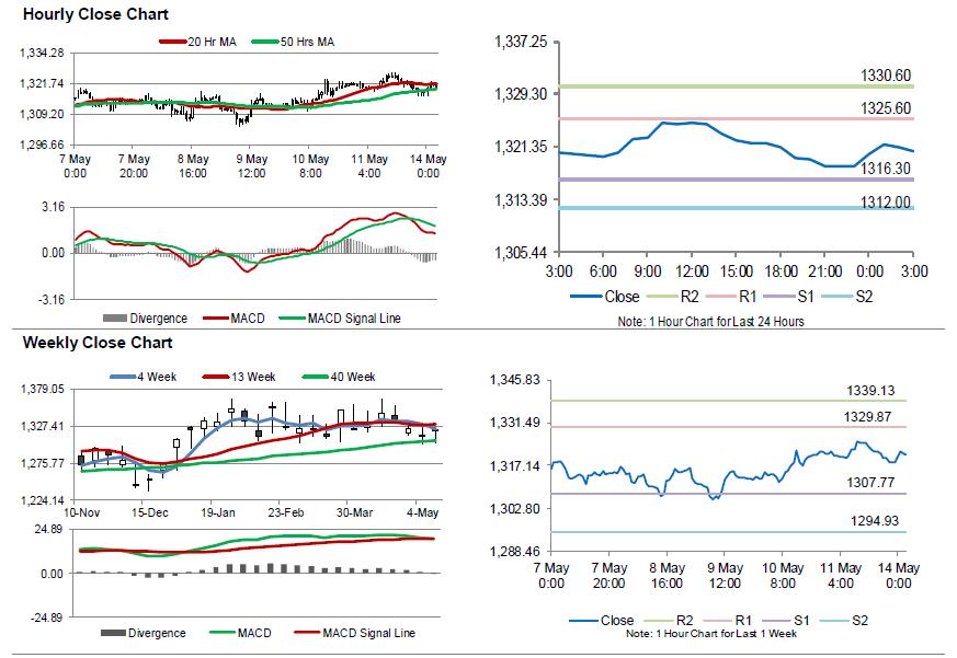The pair is expected to find support at 1316.30, and a fall through could take it to the next support level of 1312.00. The pair is expected to find its first resistance at 1325.60, and a rise through could take it to the next resistance level of 1330.60.