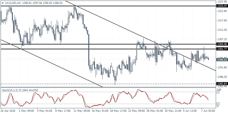XAUUSD (1296.03): Gold prices have been trading flat and the rather choppy price action continues to show consolidation below the 1301 level of resistance. With price action breaching the outer trend line of the falling price channel, we expect to see this consolidation continue. However, an upside breakout is imminent closer towards next week’s FOMC and ECB meetings. A breakout above 1304 – 1301 is likely to signal a correction to the upside targeting 1325.
