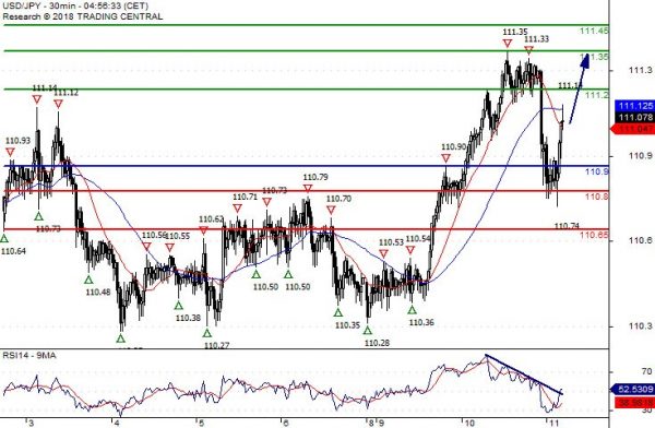 Our preference Long positions above 110.90 with targets at 111.20 & 111.35 in extension.
