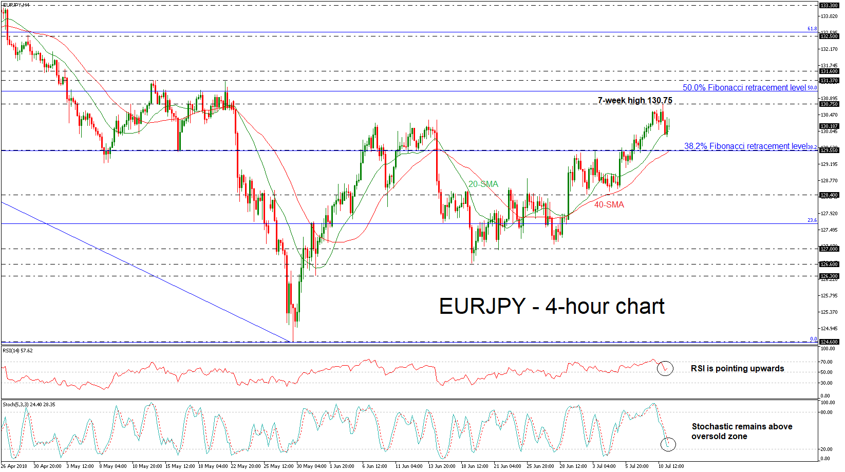 EURJPY has advanced considerably over the last three weeks after the rebound on the 126.60 support level. During yesterday’s trading session, the pair hit a fresh seven-week high of 130.75 and then plummeted until the 20-simple moving average (SMA) in the 4-hour chart. Currently, the market is trying to erase earlier losses as it is set to create the second bullish session in a row.
