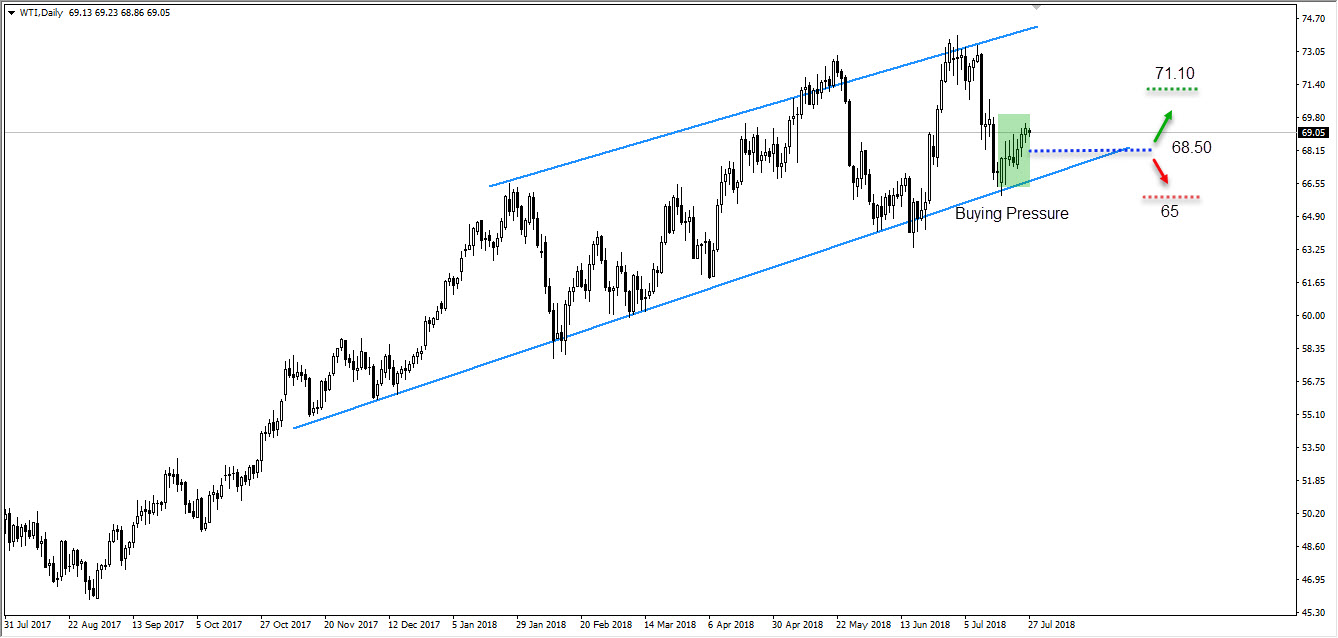 The bias remains bullish, has a target at 71.10. However, a move and close below 68.20 would signal a more of drop toward 65.