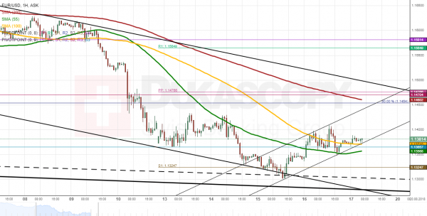 Despite surging early on Thursday, the Euro failed to pick up momentum against the US Dollar, as it was pressured from above by the psychological 1.14 level. Support was set by the 55-hour SMA near 1.1316. These two barriers forced the rate to trade in a narrow range the whole session yesterday.