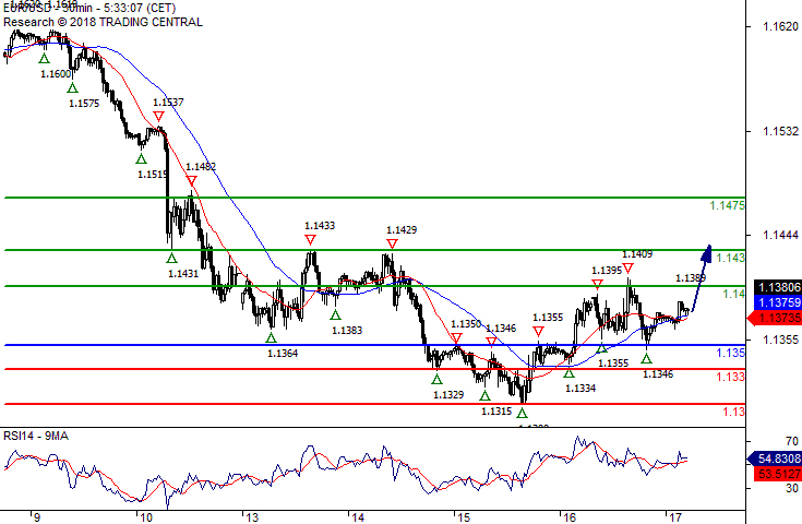 Our preference Long positions above 1.1350 with targets at 1.1400 & 1.1430 in extension.