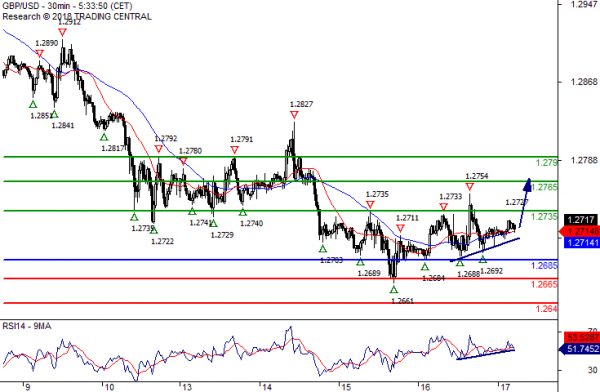 Our preference Long positions above 1.2685 with targets at 1.2735 & 1.2765 in extension.