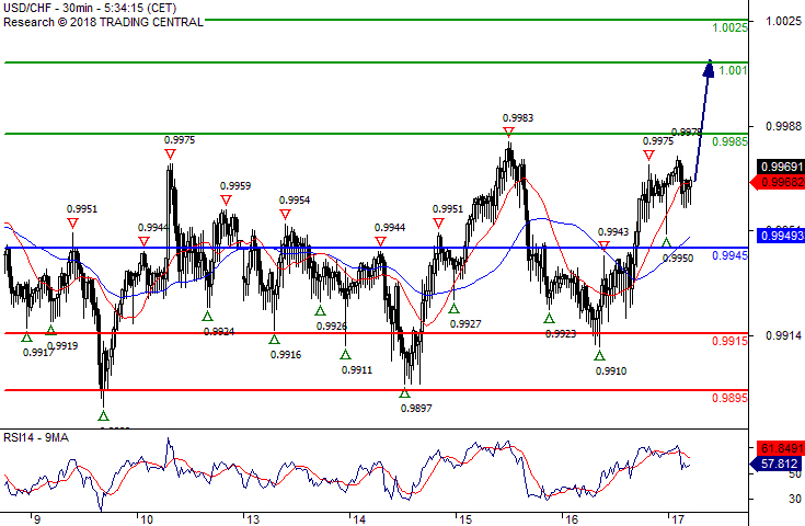 Our preference Long positions above 0.9945 with targets at 0.9985 & 1.0010 in extension.
