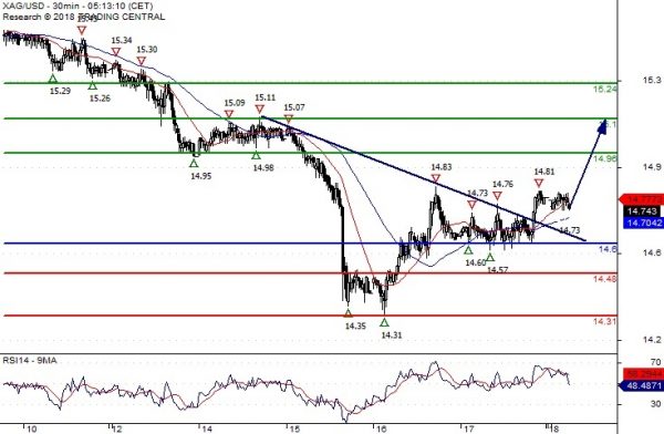 Our preference Long positions above 14.6000 with targets at 14.9600 & 15.1000 in extension.
