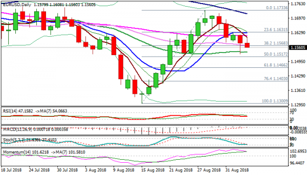 Fresh weakness offsets positive signal from Wednesday’s strong downside rejection and failure to close below 1.1568 pivot (Fibo 38.2% of 1.1300/1.1733 ascend).