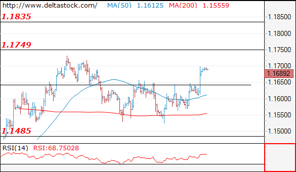 The bias is positive above 1.1650, for a rise through 1.1730, en route to 1.1840 area.