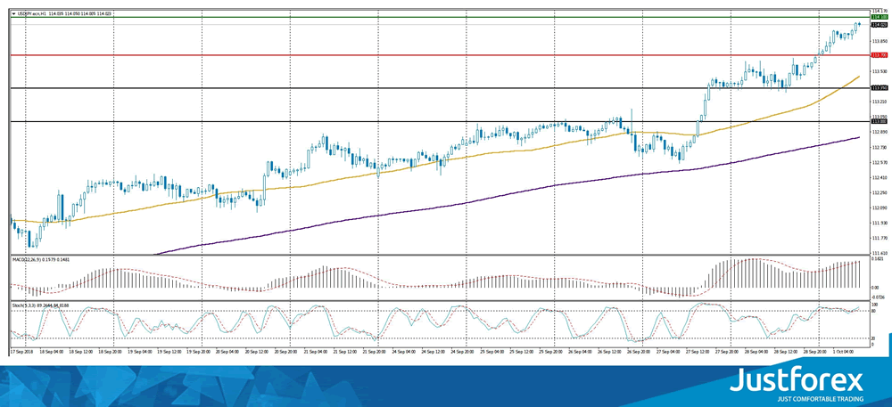 There is an upward trend on the USD/JPY currency pair. During the Friday’s and today’s trading, the growth of quotes was almost 100 points. At the moment, local support and resistance levels are: 113.700 and 114.100, respectively. The positions should be opened from these marks. The trading instrument has the potential for further growth.