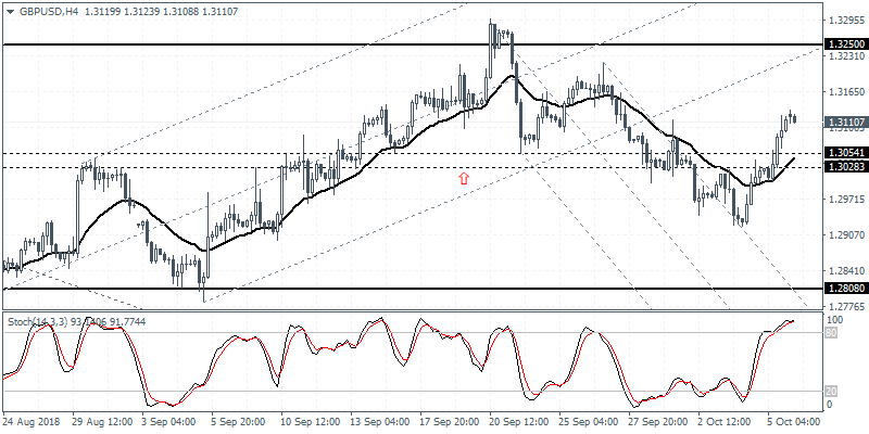 GBPUSD (1.3110): The GBPUSD currency pair managed to break out from the resistance level of 1.3054 – 1.3028 region. The upside bounce could potentially shift the bias to the upside. However, we expect a rebound back to the breached resistance to establish support. Forming support here could mean a possible rebound in price action. The resistance level at 1.3250 is likely to be the target to the upside. In the event of a failure to establish support, the cable could ease back below and settle into a range.