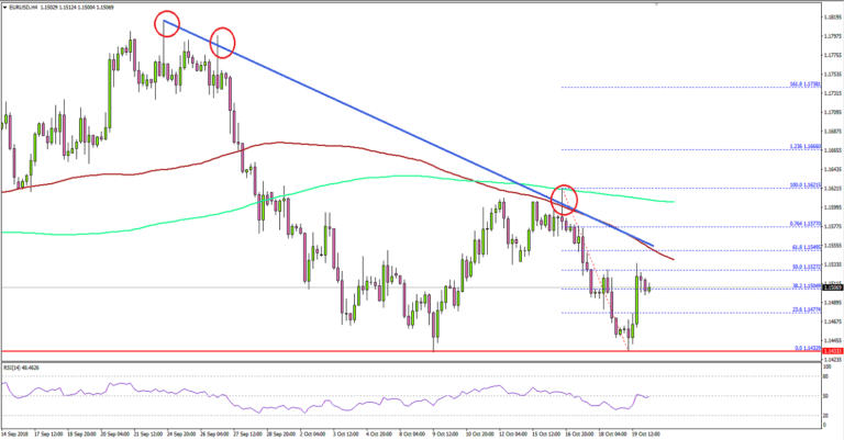 The pair traded as low as 1.1432 and later started a short term recovery. The pair moved above the 23.6% Fib retracement level of the last decline from the 1.1621 high to 1.1432 low.