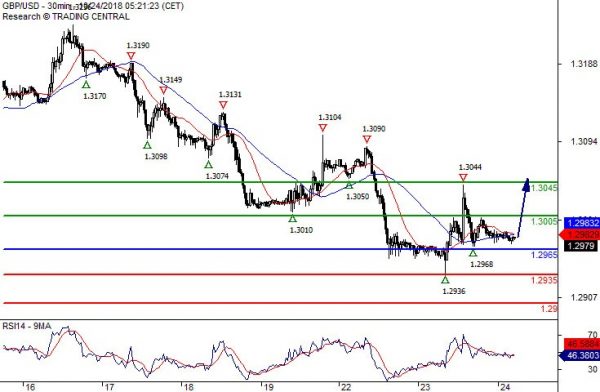 Our preference Long positions above 1.2965 with targets at 1.3005 & 1.3045 in extension.