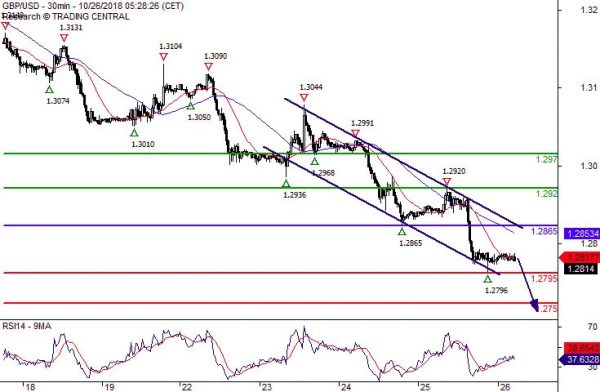 Comment A break below 1.2795 would trigger a drop towards 1.2750.