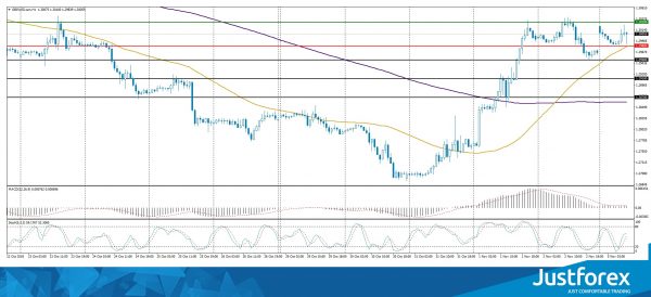 The MACD histogram is in the positive zone, but below the signal line, which gives a weak signal to buy GBP/USD.