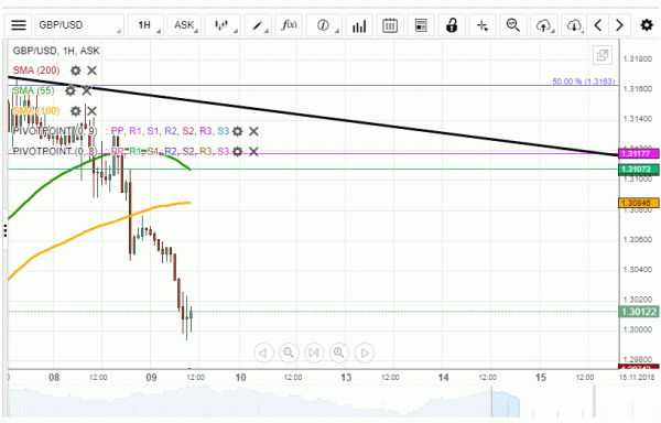 After meeting the SMA the rate has two scenarios. It will either bounce off the support and surge back up to the 1.3080 level, where the 100-hour SMA is located at. On the other hand the 200-period SMA might get passed and the 1.2900 level could be reached in that case.