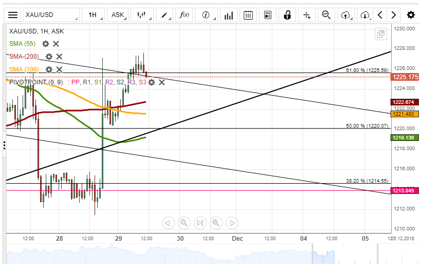 During Wednesday’s trading session, the yellow metal broke most of the technical indicators to appreciate by 1096 pips or 0.90 %. During Thursday morning hours, the gold broke the resistance of the 61.80% Fibo to trade at the 1,226.42 mark.